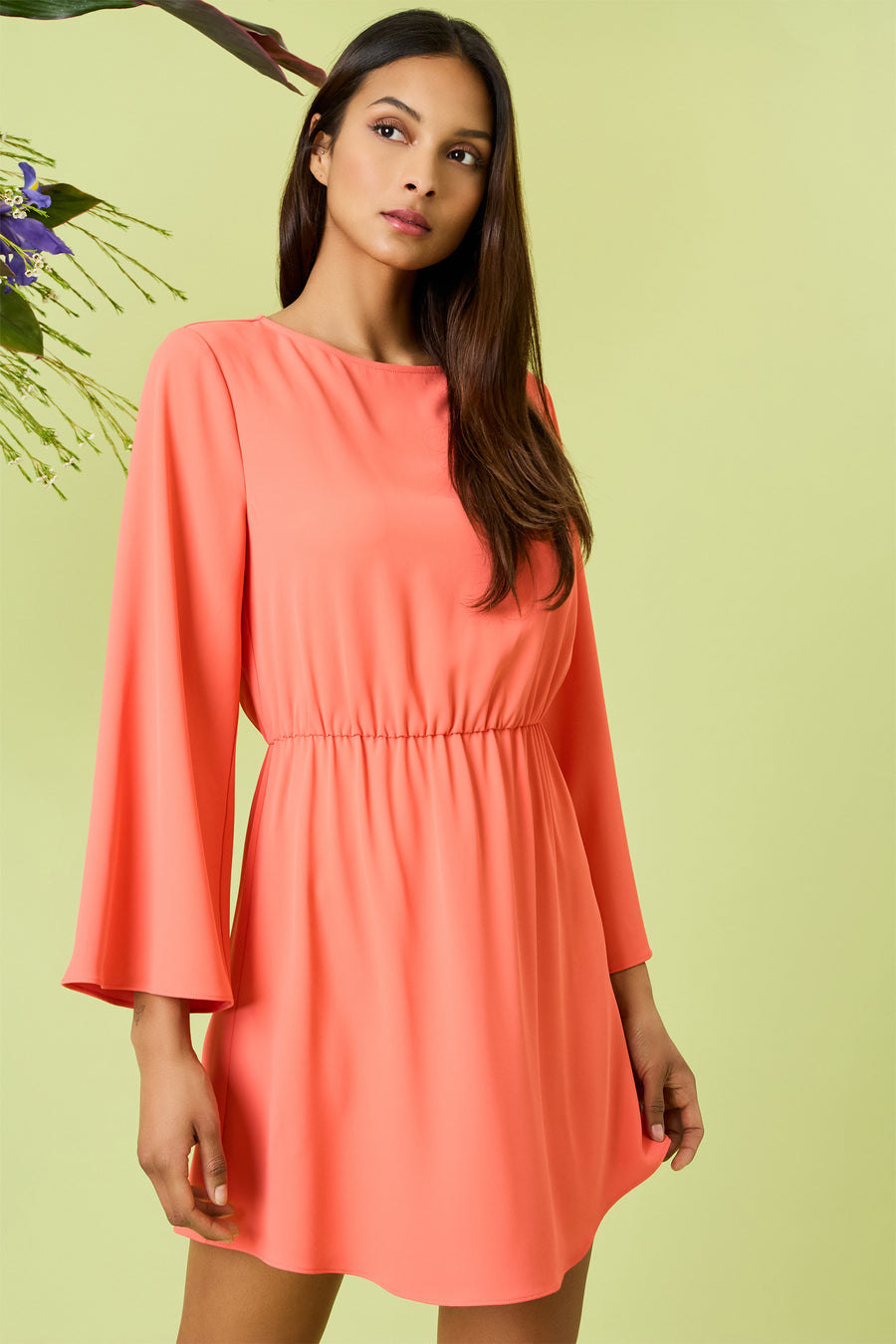 The Fatima dress embodies easy glamour with its breezy silhouette and statement bell sleeves that bring drama to every occasion. Its flattering gathered waist and mini length create a carefree yet polished look that requires minimal styling. Transform this versatile piece from casual weekend brunches to cocktail events by simply switching up your accessories.