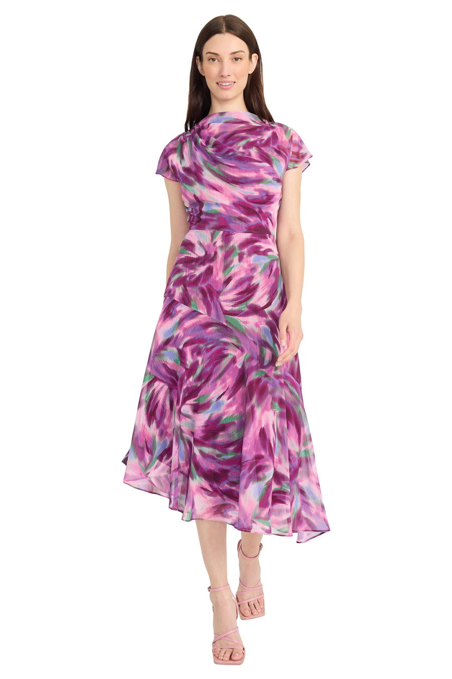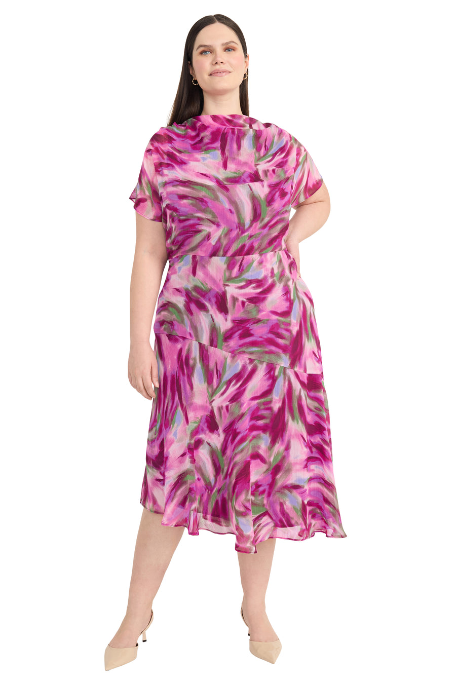 Artistry in every fold. The Antoinette dress elevates abstract prints through masterful draping and ethereal chiffon that captures light and attention. From cultural galas to summer celebrations to milestone anniversaries, this piece proves that femininity can be both bold and refined. For the woman who understands that true elegance requires imagination.