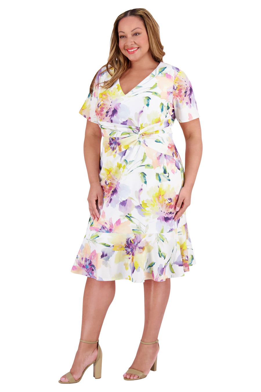 The Brandi dress returns in a dreamy new watercolor print! This customer favorite silhouette features a flattering twist-front detail and V-neckline that work together to create the perfect silhouette. The elbow-length sleeves and flounce hem add just the right feminine touches. Perfect for garden weddings, graduation ceremonies, or those special mother-of-the-bride moments. The midi length keeps things perfectly polished!