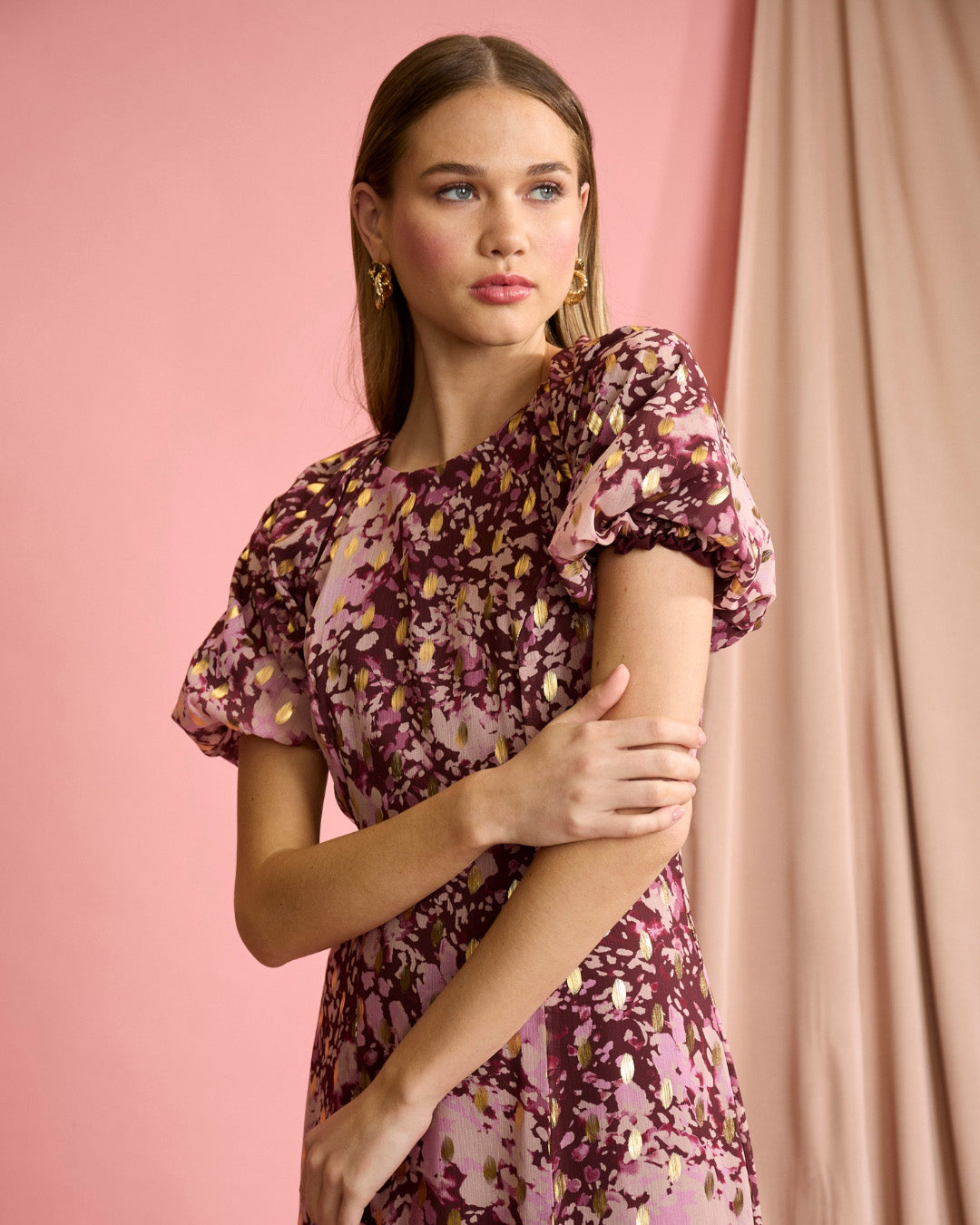 Kiki Puff Sleeve Midi in Abstract Fauna