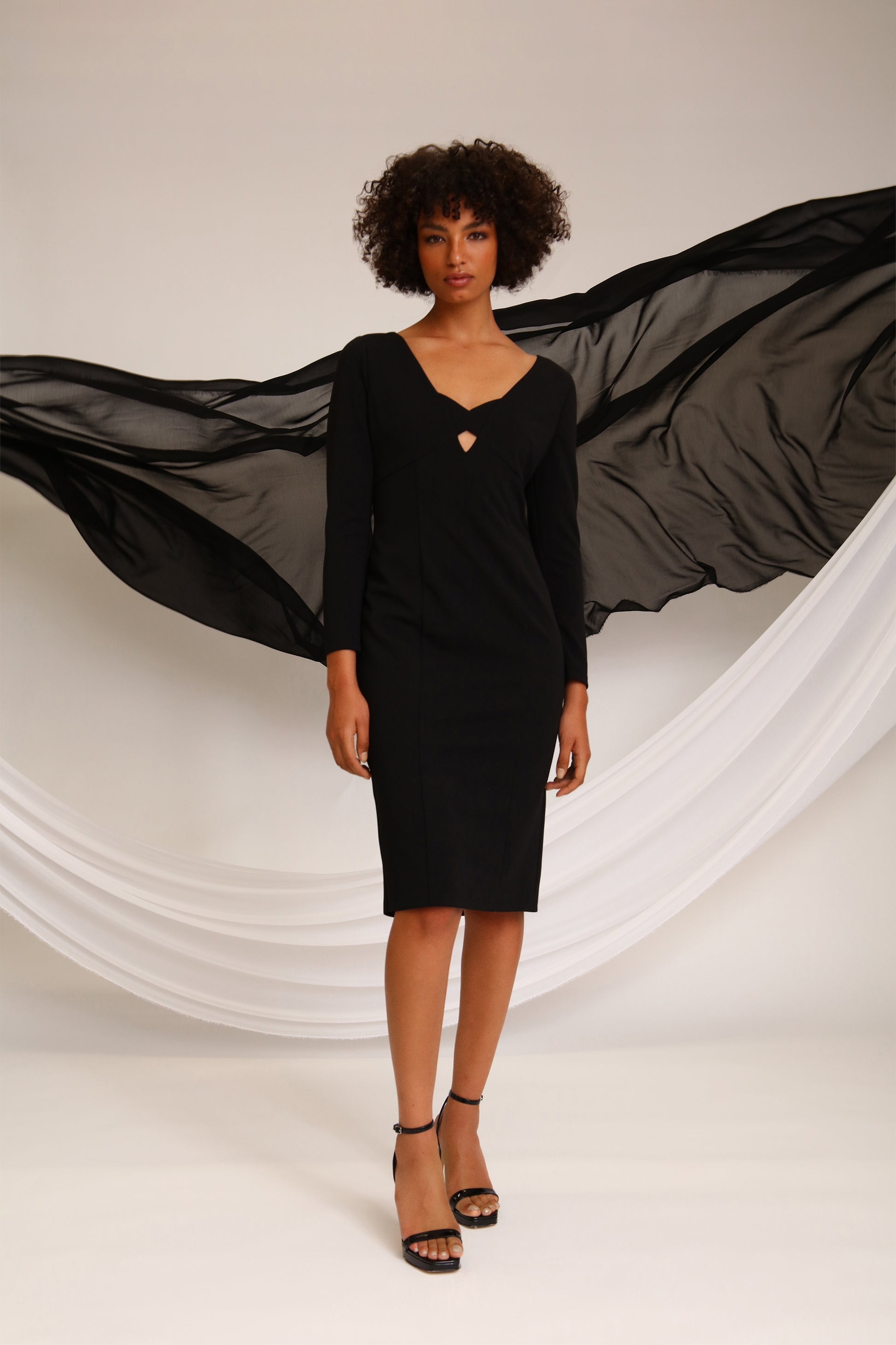 Meet the Donna Morgan Darra dress. With its long sleeves and cutout details, it is a perfect blend of sophistication and modernity for any occasion.